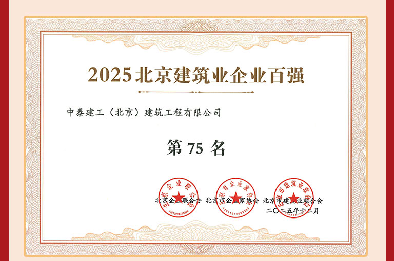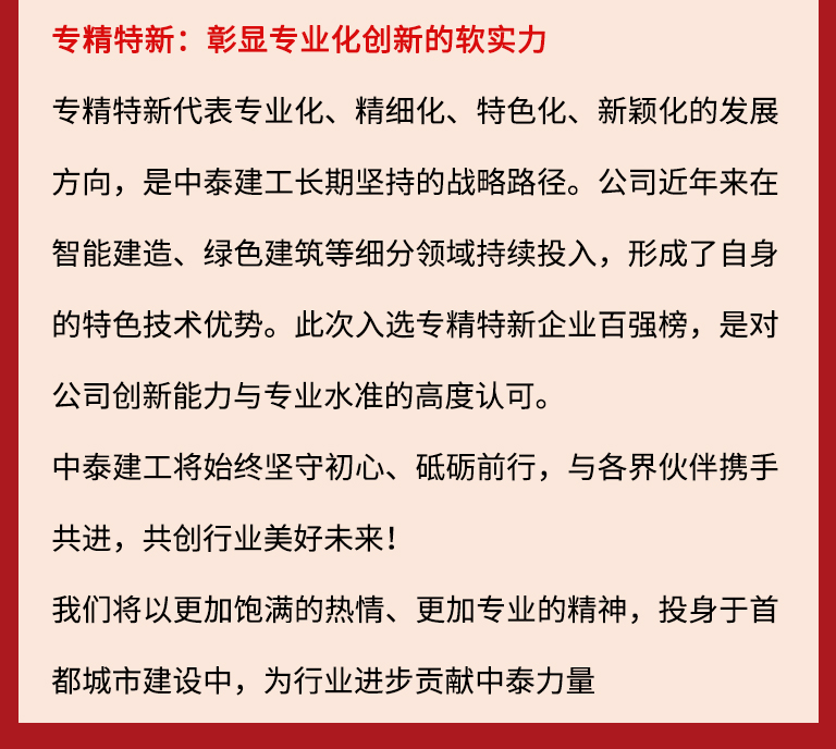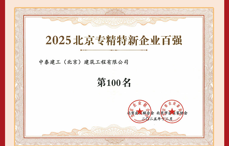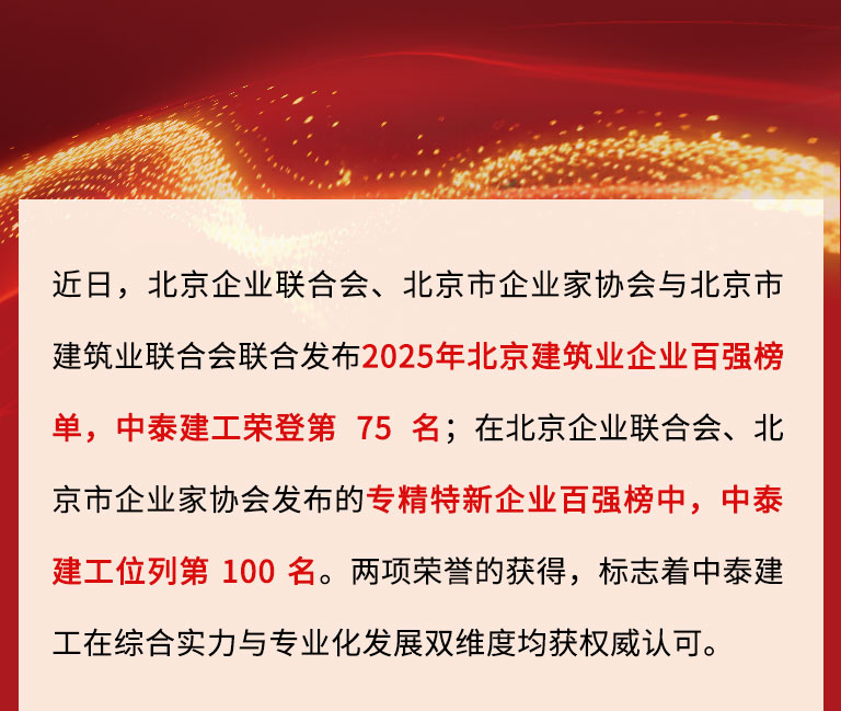 喜訊 | 中泰建工榮登2025北京建筑企業百強及專精特新企業百強“雙榜”!